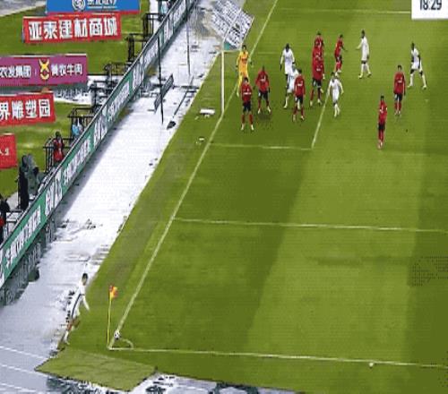 第9分钟,彭欣力开出任意球,侯森出击没有碰到皮球,贺一然头球摆渡,皮球从门前滑过。