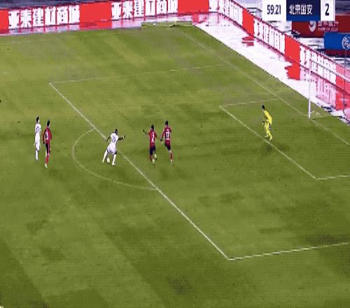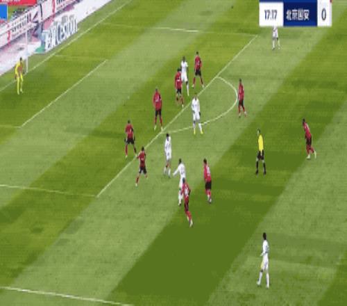 第19分钟,北京国安获得角球,塞尔基尼奥在无人盯防的情况下,头球破门。