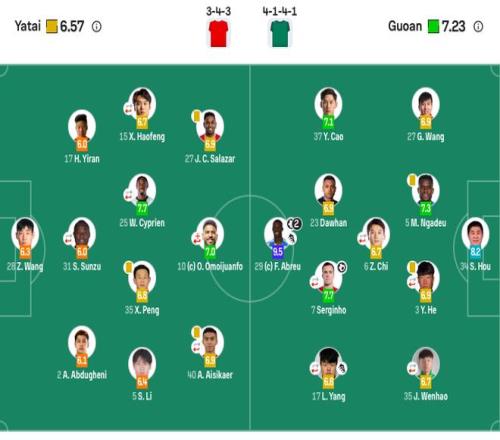 后卫:3-何宇鹏(64’4-李磊)、5-恩加德乌(F)、27-王刚、35-江文豪(46’26-柏杨);