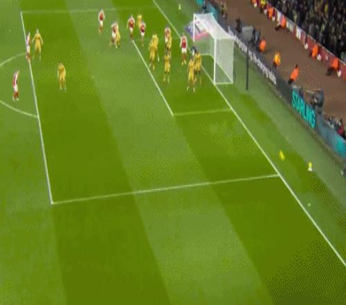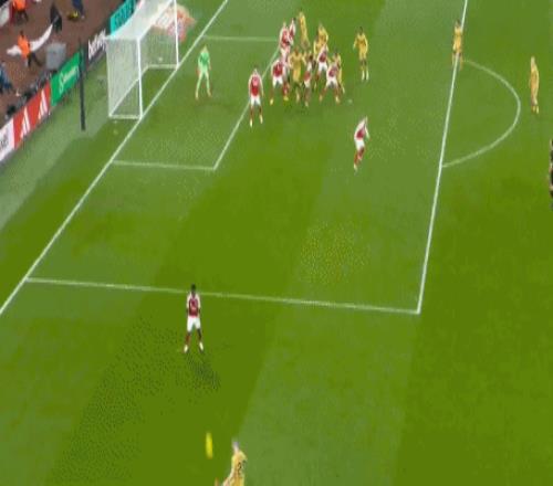 萨卡角球传中,卡拉菲奥里和廷贝尔连续攻门被挡出,拉克鲁瓦混战当中自摆乌龙,1-0!